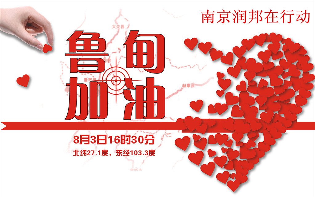 8月3日16時30分,云南省昭通市魯甸縣境內發生6.5級地震。災情十分嚴重,已致數千人傷亡。災情牽動著中央領導的心,牽動著全國人民的心,也牽動著我們潤邦人的心。災情就是命令。潤邦公司盡我們的綿薄之力獻上一份愛心,捐款人民幣壹萬元幫助災區人民重建家園。南京潤邦機電設備有限公司全體員工為云南魯甸祈福,祝愿災區人民早日走出災難的陰影。