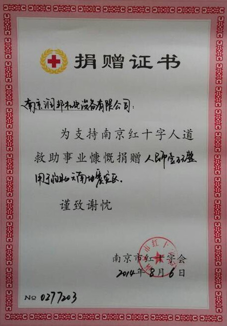 南京潤邦機電設備有限公司為魯甸災區捐款1萬元 2014-08-07